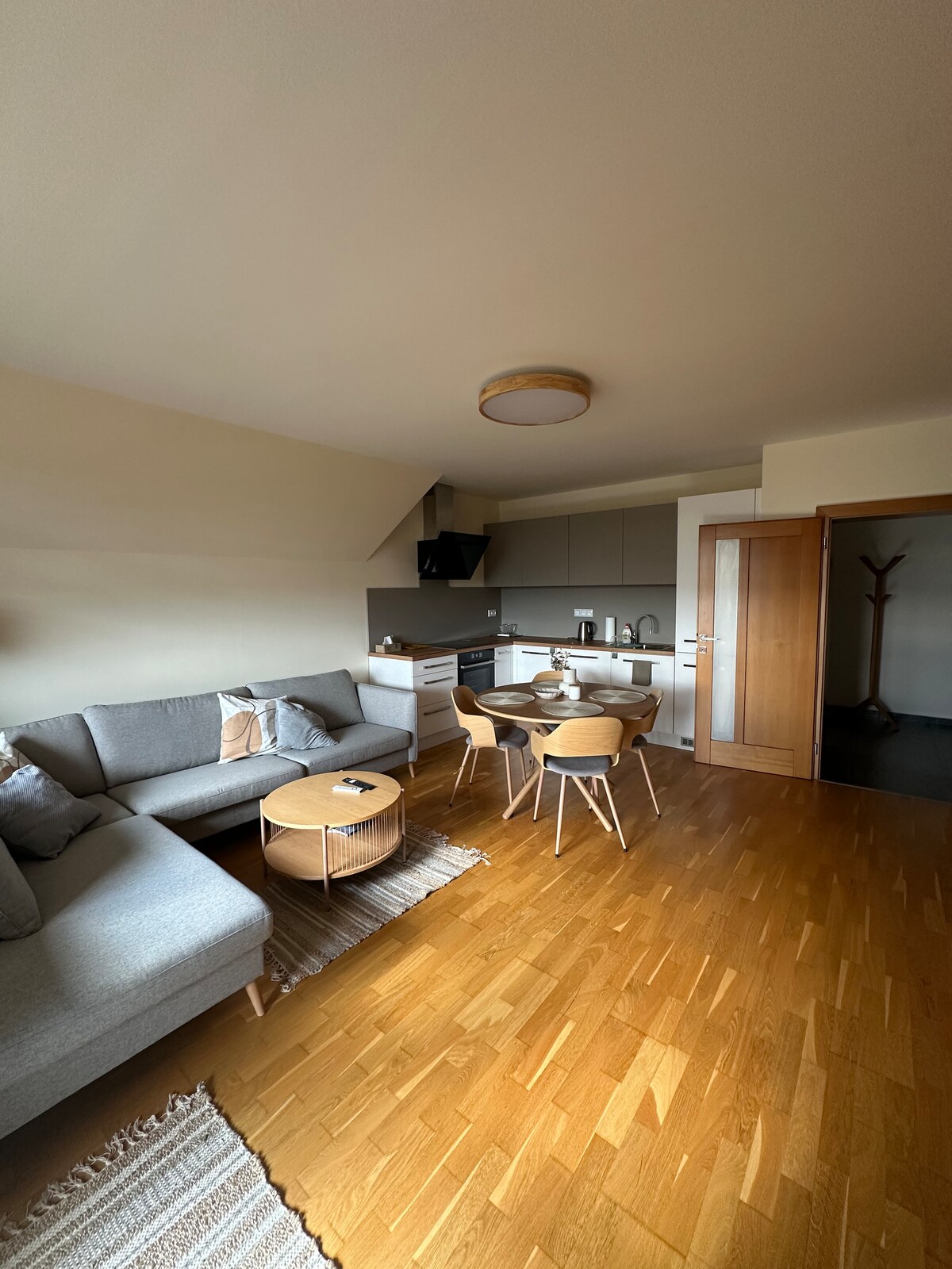 Stylish Living in a New Building in a Quiet Location with a View of the Tatras The apartment is spacious, ideal for families with children, couples, and individuals. A fully equipped kitchen, bathroom with bathtub, shower, dryer, and washing machine, cozy bedrooms, and a kitchen with a living room ensure comfort. It includes a balcony with a view and a parking space. Good access to public transportation and amenities. Hassle-free rental and a pleasant environment guarantee satisfaction.