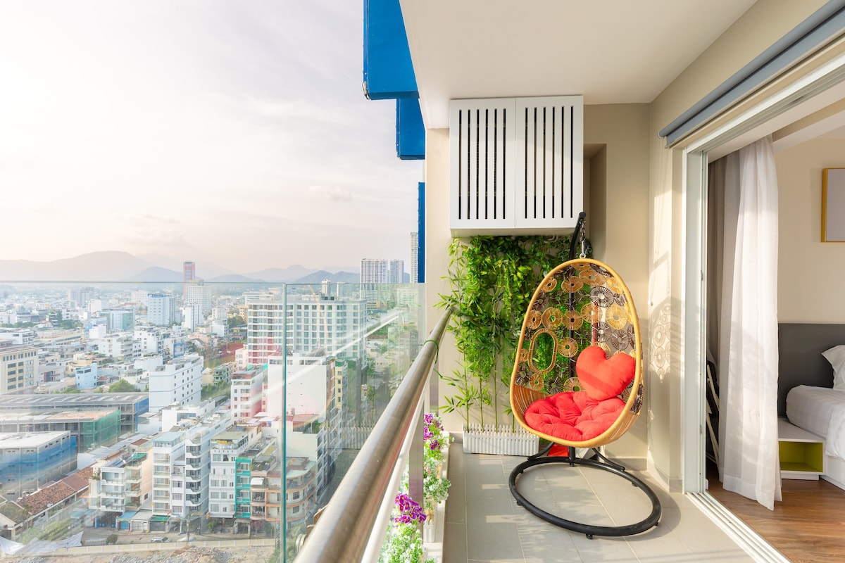 Vítejte v našich Sunnyhomes! S perfektní polohou: 2 minuty chůze na ulici Tran Phu a pláž. 5 minut chůze k tramvajové zastávce Hương Tower (Agarwood Tower) a nočnímu tržišti! 2 minuty chůze do Vincome Center (tržnice), Lotte Center, tržnice Xóm Mới..! Naše ubytování se nachází v budově Tuiblue (5hvězdičkový hotel) a nabízí pohodlný, útulný a velký garsonkový apartmán (větší než 55 m2)!Toto ubytování je vhodné pro páry, sólo dobrodruhy, služební cesty, skupiny lidí a rodiny.
