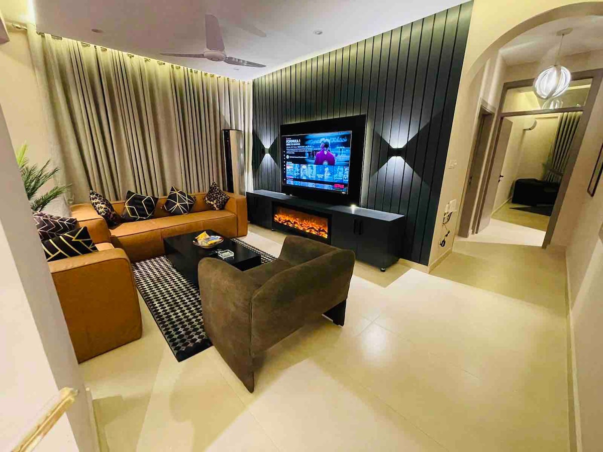 Když do tohoto bytu vejdete, první reakcí bude, že je to krásný, elegantní a čistý byt. Rodinné prostředí k dispozici. Budova je také obklopena krásným parkem. – 15 minut od letiště 🛫 -2 minuty od (restaurace Tandoori, chai que) - 2 minuty od nemocnice Haneef 🏥 - suterén budovy má Mart - K dispozici je také pomocník, který vám bude sloužit a uklízet váš pokoj, doručí vám vše, co potřebujete, vezme vaše oblečení do prádelny atd.