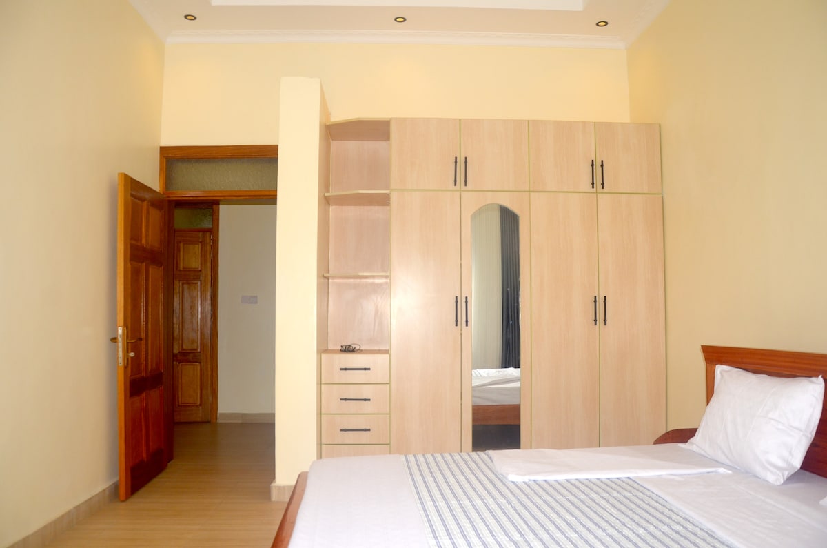 Vítejte v našem prostorném apartmánu se třemi ložnicemi v Gishushu v Kigali. Nachází se v klidných kopcích, jen pár minut od Rwanda Development Board a Kigali Convention Center, které jsou ideální pro obchodní akce. Prozkoumejte rušnou oblast Kisimenti s jejími restauracemi a kavárnami. Náš apartmán je ideální pro služební cesty i rekreační pobyty. Nabízí útulné útočiště s výhodným přístupem k klíčovým místním památkám, takže váš pobyt v Kigali bude pohodlný a příjemný.