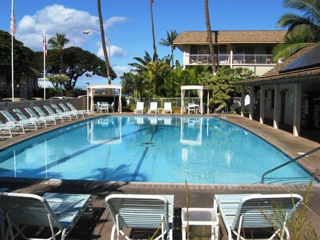 Studio s vlastní koupelnou, kuchyňský kout v komplexu Kihei Kai Nani s novou dělenou klimatizací. Jste v pěší vzdálenosti od mnoha restaurací a obchodů a naproti pláži Kamaole II, jedné z nejlepších pláží na Maui! Bezplatné snadné parkování; prádelna na mince v areálu. Soukromá veranda s výhledem na bazén. Žádné rekreační poplatky. Studio je ve 3. patře! (žádný výtah) Nemovitost je nekuřácká s výjimkou 2 vyhrazených prostor. *Sazba za noc ZAHRNUJE povinné daně.