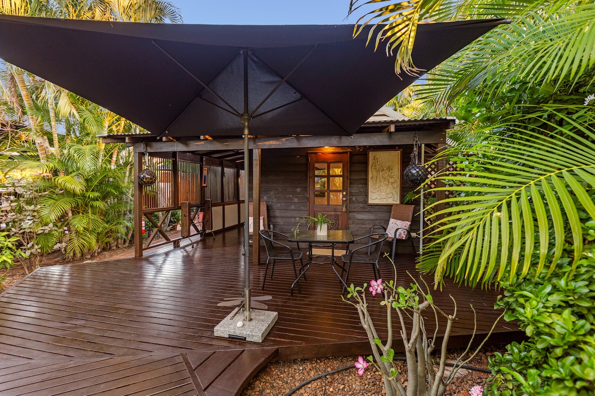 Objevte soukromou oázu pouhých 10 minut chůze od Cable Beach. Naše plně samostatné studio nabízí manželskou postel, dobře vybavenou kuchyň, vlastní koupelnu a pračku. Odpočívejte v pohodlí s Netflixem na vlastní televizi. Užijte si soukromý bazén a venkovní prostory. Dostatek oploceného parkovacího místa pro auta a přívěsy. Ideální pro páry nebo jednotlivce. Rezervujte si nyní a získejte dokonalou kombinaci pohodlí a komfortu