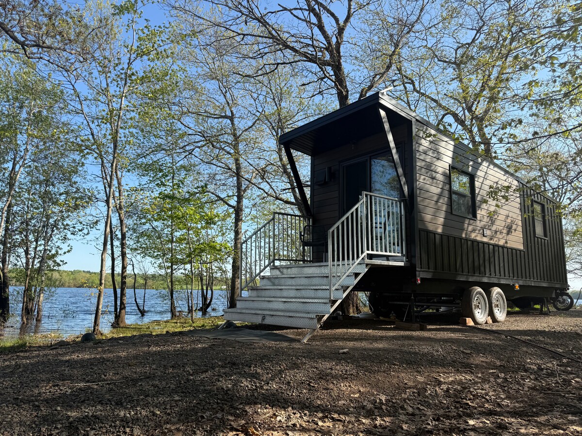 Mini domek u vody s vlastním zdrojem energie a dřevěnou vířivkou