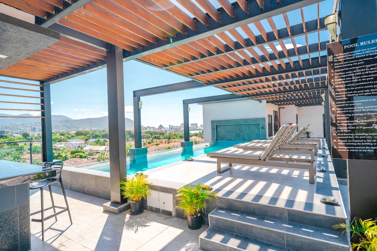 Ráj na zemi: Nová oáza v Kingstonu Uteč do tropického ráje v srdci města. Náš ohromující byt v 5. patře nabízí klidné útočiště před městským shonem s dechberoucím výhledem na panoráma Kingstonu. Odpočiň si v našem střešním bazénu obklopeném bujnou zelení a pulzující energií města. Perfektní poloha pro objevování bohaté historie a kultury města. Udělej si krátkou procházku do: Devon House, muzea Boba Marleyho, dalších atrakcí Proč si vybrat nás? Bezkonkurenční lokalita, úžasné výhledy, moderní vybavení