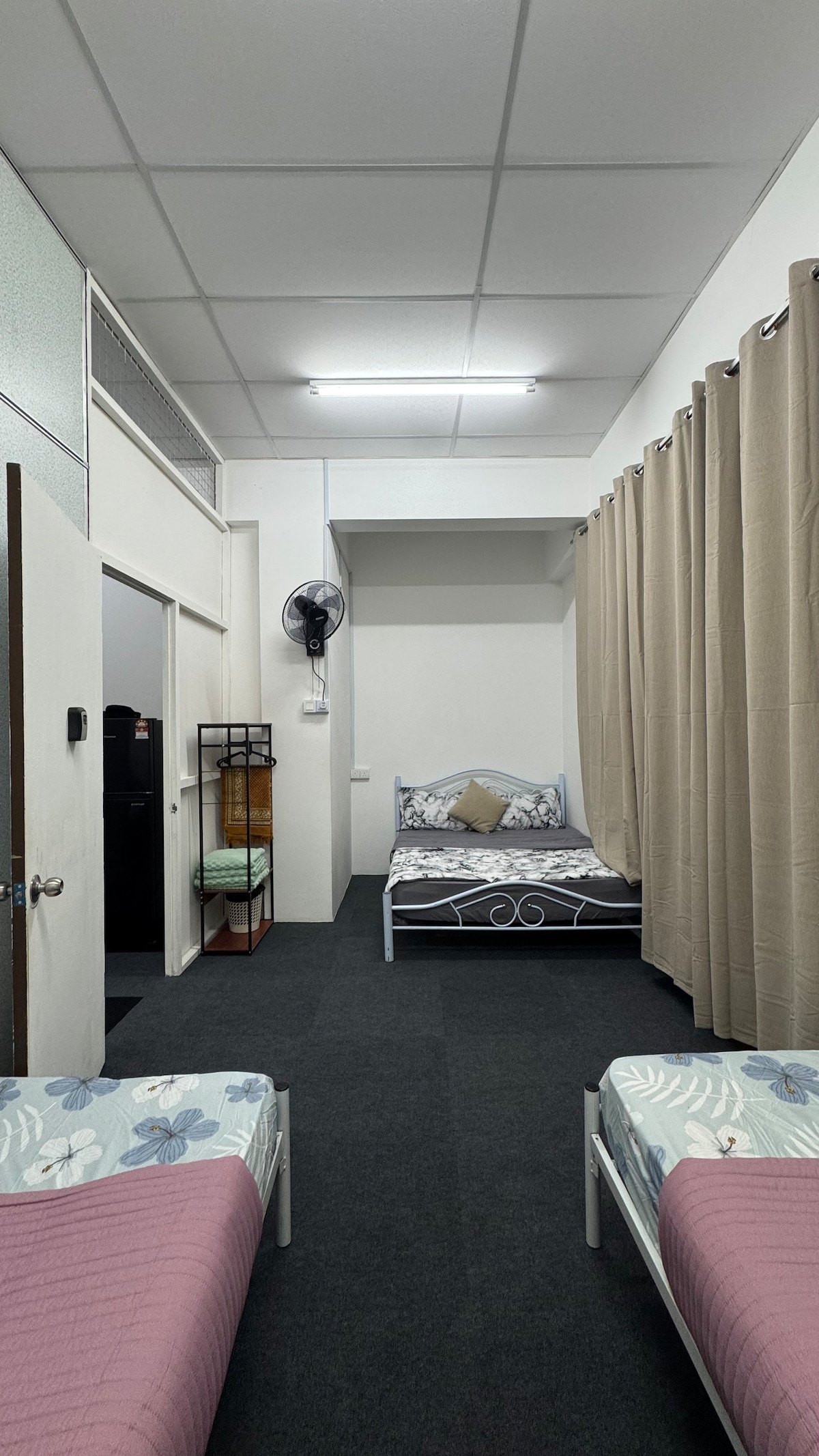 Jedná se o apartmá s obývacím pokojem + ložnicí + připojenou koupelnou. Není potřeba procházet žádným sdíleným obytným prostorem, abyste se dostali do ložnice (pouze chodba je sdílena s ostatními hosty). Dveře jsou zabezpečeny inteligentním systémem zámků pro samoobslužný proces ubytování a odjezdu. Naše ubytování se nachází v centrální a klidné čtvrti. Nemovitost je prostorná a obklopená zelení. Hosté si mohou vychutnat pohodlí ve dne [5 minut na letiště, 10 minut autem do starého města a Ipoh Parade] a v noci si užít klidný relaxační pobyt.