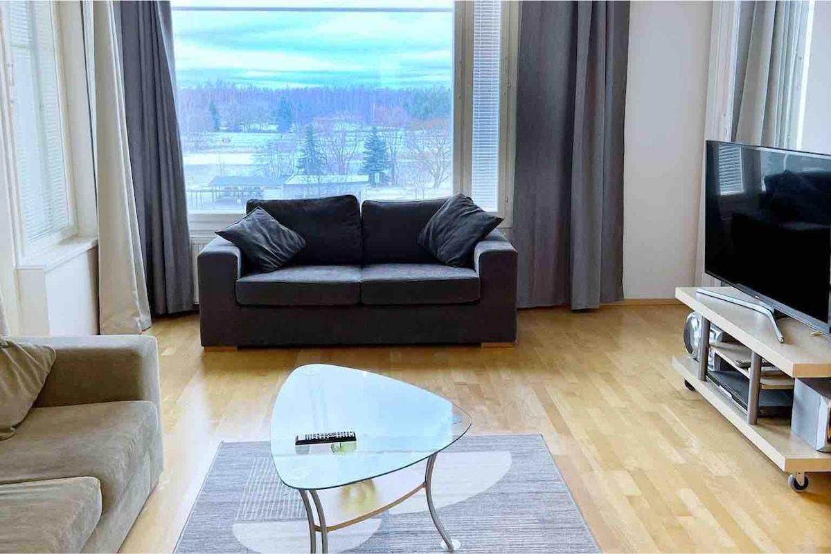 Klimatizovaný apartmán se saunou hned vedle řeky Kokemäenjoki a centra města. Přímo v přízemí ve stejné budově je obchod s potravinami a všechny služby v centru města jsou v docházkové vzdálenosti. Kirjurinluoto na druhé straně řeky nabízí širokou škálu outdoorových aktivit a také dětské hřiště. Jsme flexibilní, pokud jde o časy příjezdu a odjezdu. Více informací níže. :)