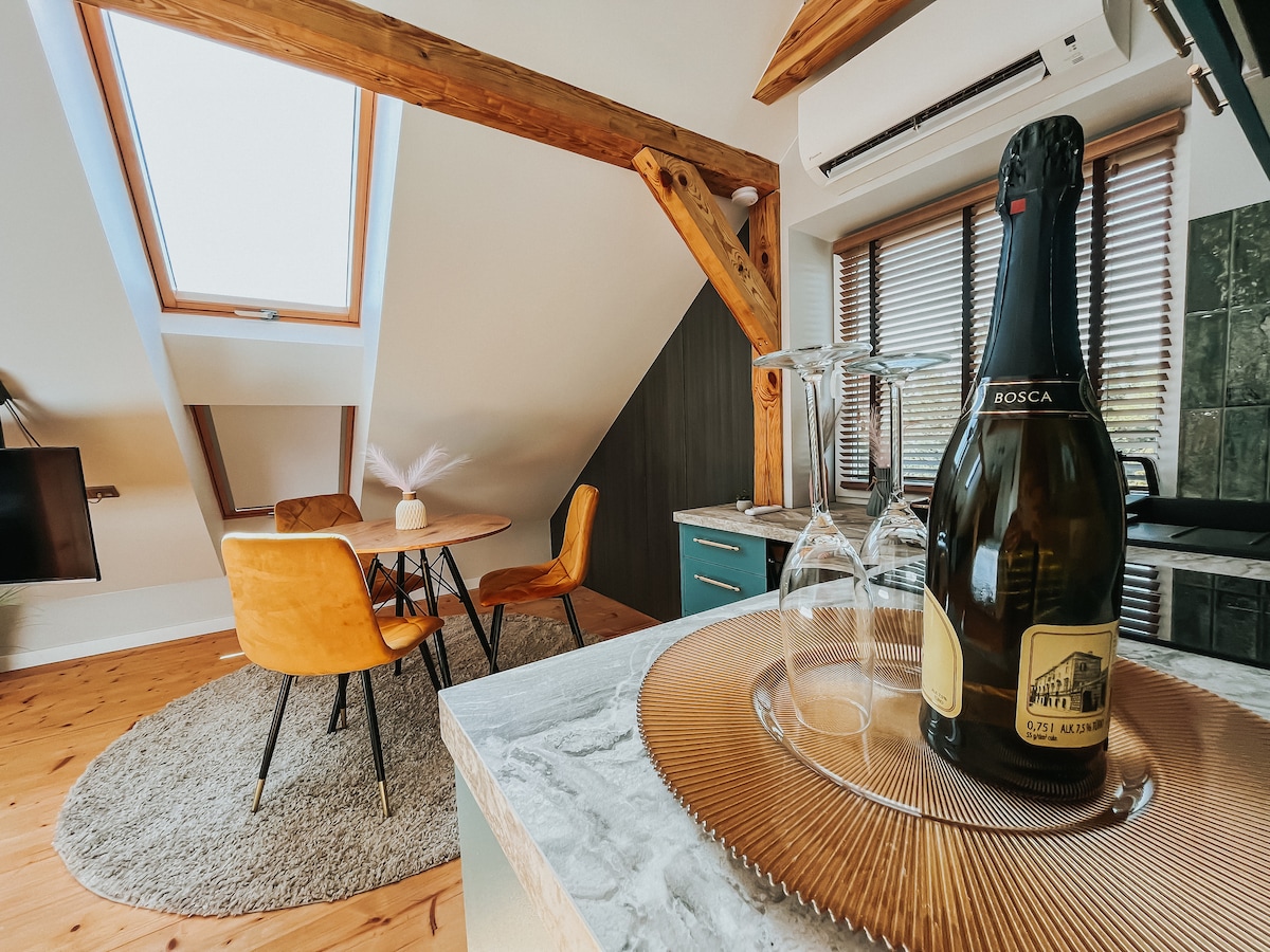 Stylový a nově zařízený útulný garsonka s jednou ložnicí a hotelovým vybavením v srdci starého města. Nabízí pohodlnou manželskou postel, vybavenou kuchyň s různými druhy kávy a čaje, víceúčelový stůl pro práci a volný čas, koupelnu se sprchou. Vzhledem k tomu, že se byt nachází ve starém centru, je obklopen starým městským trhem, rušnými bary a krásnými úzkými uličkami. Bude vám zaslán kód pro vstup do pokoje. Pro aplikaci pro online příjezd bude požadována kopie vašeho dokladu totožnosti