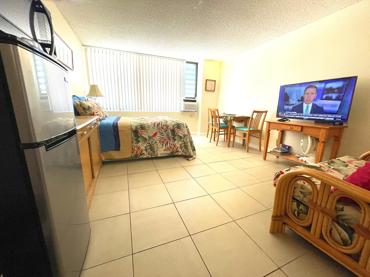 Nová renovace, nový nábytek a nové spotřebiče. Hotelové kondominium ve Waikiki, 5 minut procházka na pláž Waikiki. Skvělá poloha pro milovníky pláží a mořských sportů. Výhodná poloha, 10 minut chůze od jakýkoliv supermarket, nákupní centrum a restaurace. K dispozici jsou prádelny, restaurace, bazén a místa pro grilování v našem hotel. Ko Tiki Terrace restaurace je zapnuta přízemí u bazénu. Prádelny jsou ve 4., 8. a 12. patře. Manželská postel King je široká a pohodlná.