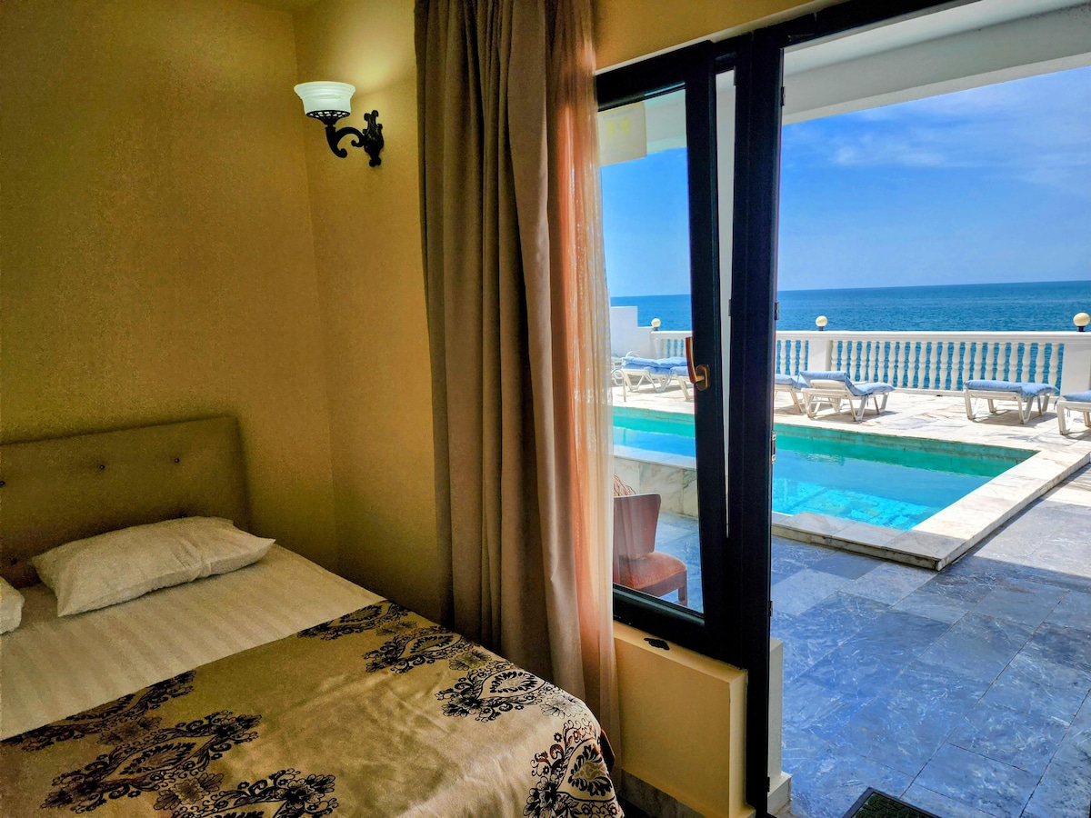 New hotel, for the comfortable stay of guests on the first line of the sea. Majitelé jsou gruzínský pár. They will welcome you with all your heart as in Mimino. Vítejte, milí hosté, dopřejte si naše víno a panáky.