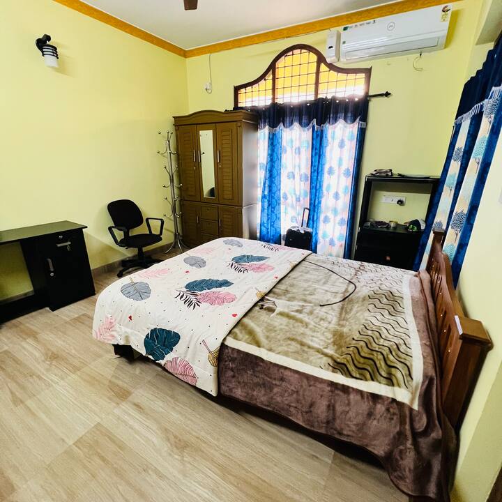 Vítejte v našem centrálně umístěném, uzavřeném komunitním bytě v Kakkanadu! Nachází se v samém srdci Kakkanadu, takže budete mít snadný přístup k hlavním nákupním centrům a restauracím. Ať už jste zde za prací nebo za zábavou, toto ubytování Airbnb je vaším dokonalým domovem daleko od domova. Upozornění: 1 ložnice není klimatizovaná. Infopark – 4 km Nemocnice Sunrise – 2 km Rajagiri Institutions – 3 km Mayabay Restobar – 500 m Indická restaurace 1947 – 2 km Restaurace Aryas – 3 km Thaal kitchen – 3 km