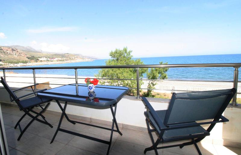 Nově zrekonstruovaný byt ideální až pro 5 osob, 5 minut chůze od pláže Kolymbari a 23 km od Chanie a benátského přístavu. Byt má dvě dvoulůžkové ložnice, plně vybavenou kuchyň, otevřený obývací pokoj a velkou koupelnu. Dům nabízí prostorný balkon s výhledem na moře ideální pro stolování nebo relaxaci. Wifi, 75palcová televize, pračka k dispozici! Strategicky umístěné v blízkosti světově proslulých pláží Balos, Falasarna a Elafonissi!