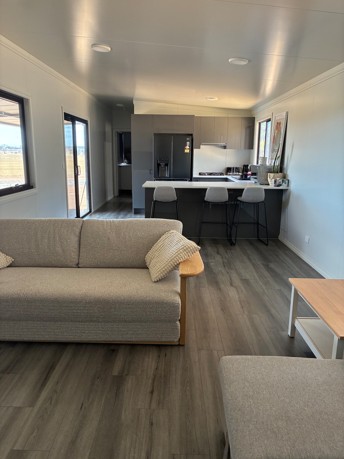 Designed with business travellers in mind, this elevated three-bedroom home offers privacy, security, and reliability—without sacrificing convenience. Located a short drive from town, the property provides distance from the main precinct, adding an extra layer of safety for vehicles, tools, and equipment. It’s close enough for a 5 am bakery run or an evening meal at the pub, yet far enough away to ensure quiet nights and a proper rest before work. The home sits high with uninterrupted views.