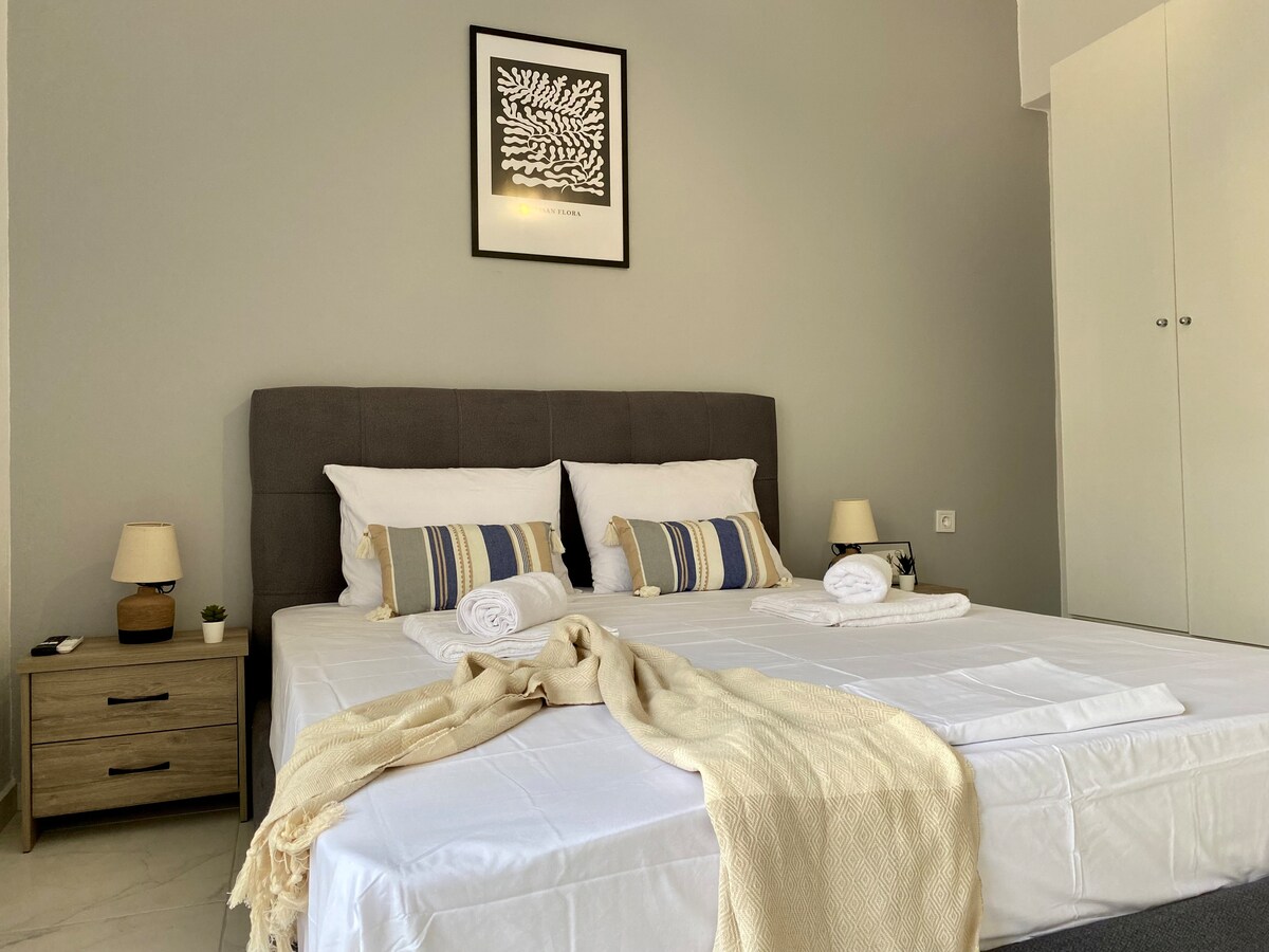 Okouzlující minimalistický byt v srdci města Kos Welcome to our brand new, minimalist apartment located in the heart of the vibrant Kos Town, just a minute walk from the historic and enchanting Old Town. Tento stylový apartmán v prvním patře se může pochlubit pohodlnou ložnicí a může ubytovat až 4 osoby, která nabízí pohodlí a styl pro každého hosta.