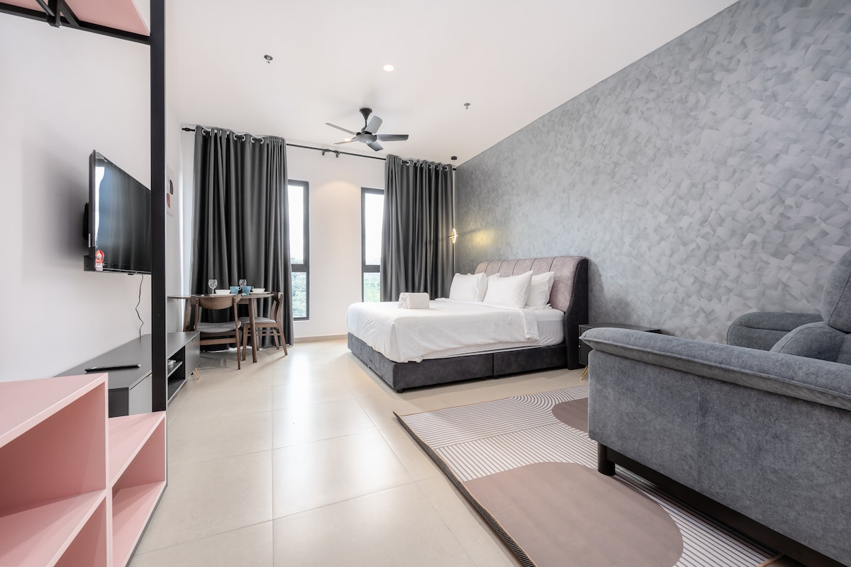 Uteč do tohoto útulného, samostatného studia v srdci Damansara Perdana – jen pár kroků od The Curve, IKEA, kaváren a obchodů. Užij si naprosté soukromí s krásným výhledem na bazén, pohodlnou manželskou postelí, relaxačními sedacími vaky a rychlým 200Mbps internetem. Bezplatné parkování pro větší pohodlí. Ideální pro páry nebo sólo cestovatele, kteří touží po klidu a pohodlí. Dobře propojené s Kuala Lumpurem a městskými atrakcemi po železnici a dálnici, v blízkosti nejlepších nákupních center – čeká na vás dokonalý malý městský pobyt u bazénu!