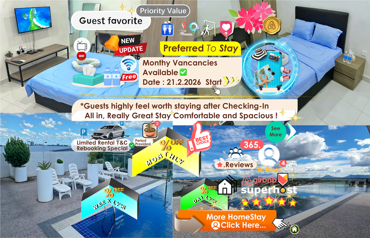Útulný prostorný luxusní apartmán s 2 ložnicemi a 1 koupelnou s výhledem na město se nachází na vrcholu největšího nákupního centra v Kuchingu (Viva City Megamall). Pouze 10 minut jízdy od mezinárodního letiště Kuching Snadný přístup k hlavním zajímavostem a slavným restauracím v Kuchingu. – Nákupní centrum Spring (3 km) – Občerstvení Top Spot (5,3 km – Kuching Water Front (5 km) – Státní muzeum Sarawak (5 km) – Malajsko-čínský park přátelství (3,5 km)