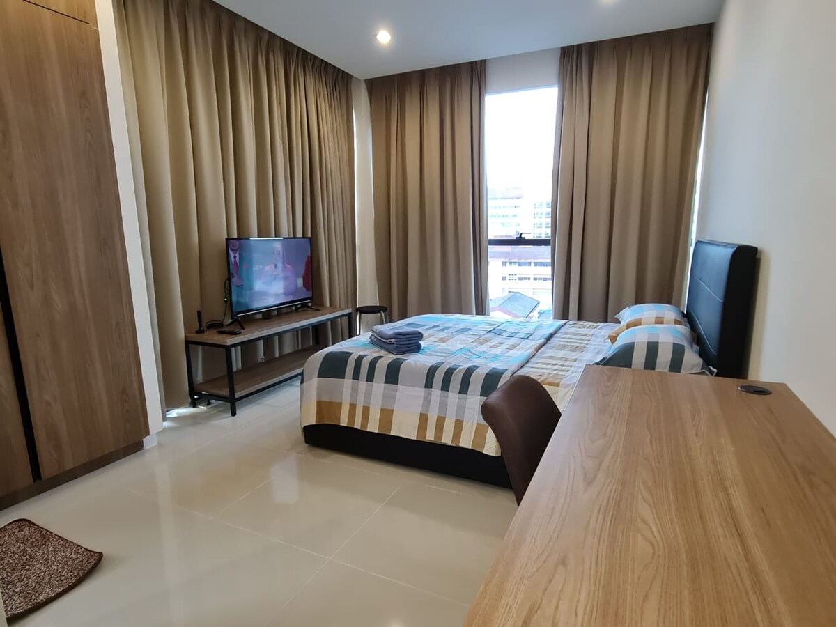 Můj domov se nachází na velmi strategickém místě (nákupní centrum Boulevard), které je v blízkosti letiště, autobusového terminálu, nákupních center a hlavních turistických atrakcí. Proto je můj domov vhodný pro služební cesty, páry a cestování s přátmi a rodinami Hosté mají přístup k bazénu, posilovně, sauně, parní lázni, nákupním a stravovacím zařízením. Užijte si pobyt v mém domově a zároveň prozkoumejte Kuchingovy nejnavštěvovanější atrakce; kulturní vesnici Sarawak atd.