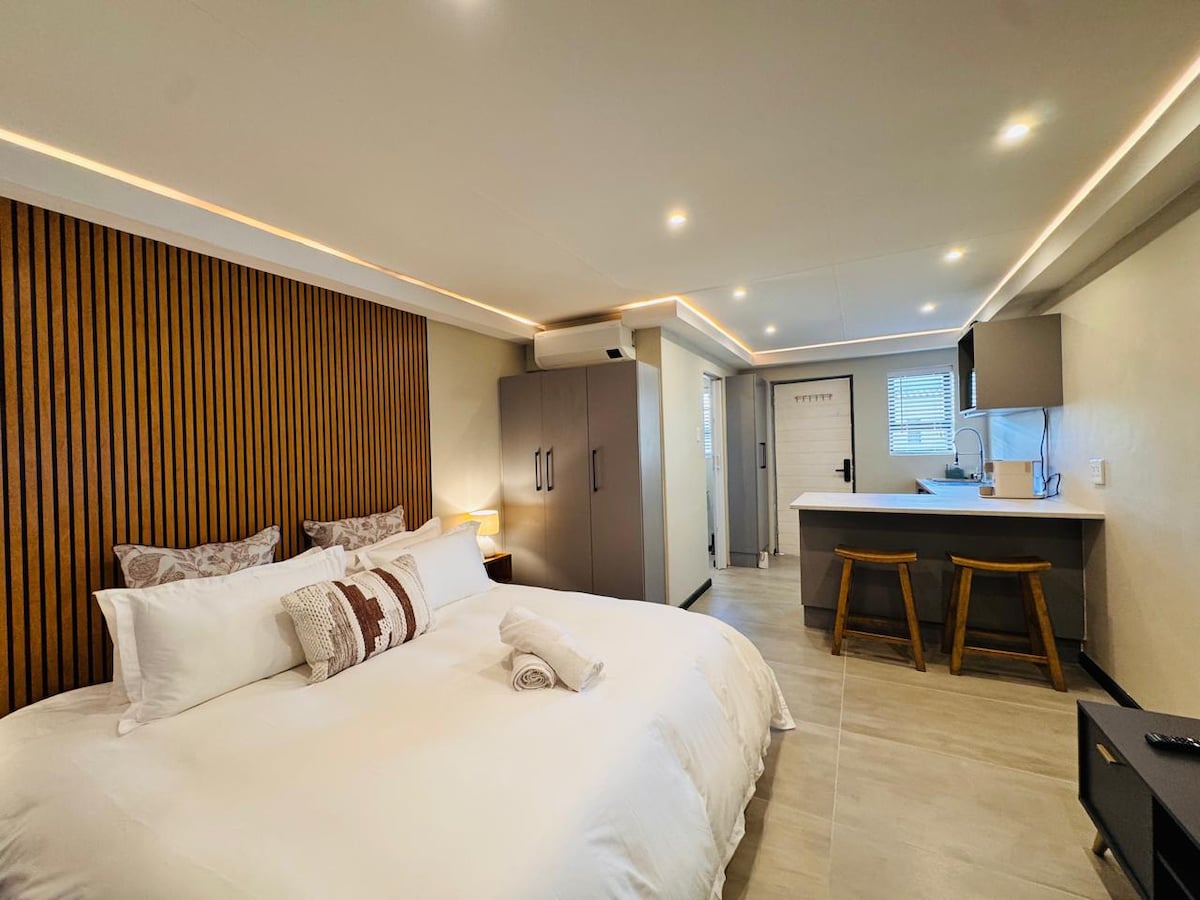 Dopřej si klidný šarm Salt & Swell, luxusního studia v pulzujícím srdci Jeffreys Bay. Díky stylovému zařízení a výhledu na oceán je tento moderní prostor ideální pro surfaře i lidi pracující na dálku. Užij si pohodlí manželské postele s jemným povlečením a útulný obývací pokoj, který tě po dni plném dobrodružství pozve k relaxaci. Plně vybavená kuchyně čeká na vaše kulinářské výtvory, zatímco velká okna zaplavují prostor přirozeným světlem a umocňují váš zážitek z pobytu u moře.