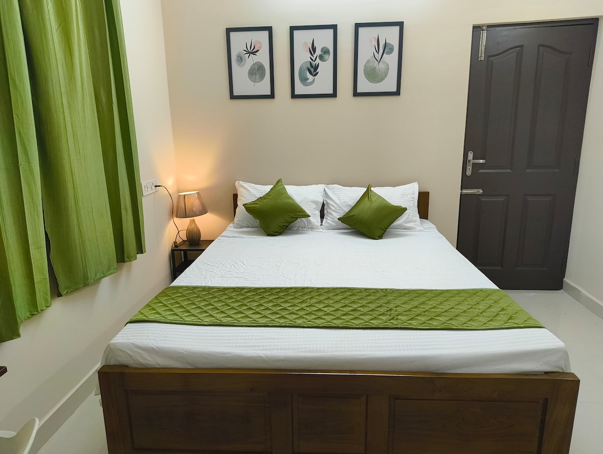 Moderní a prostorný 2BHK 1 koupelna 10 minut od letiště Chennai 5 minut od nemocnice Kauvery, Kovilambakkam. Ideální pro rodiny, služební cesty nebo tranzitní pobyty. Užij si plně zařízené interiéry s pohodlnými postelemi, klimatizací, RO, lednicí, WiFi, chytrou TV, dobře vybavenou kuchyní. Příhodně umístěné v blízkosti metra, IT parků, restaurací a obchodů. Náš domov je bezpečný, čistý a navržený pro pohodlí a nabízí vybavení jako v hotelu s důrazem na soukromí. Ideální pro krátkodobé a dlouhodobé pobyty