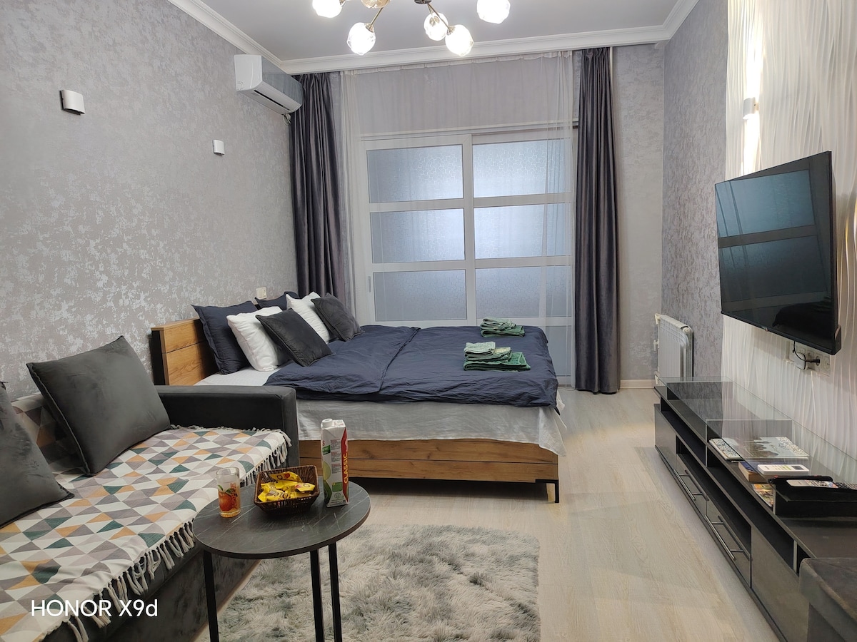 Luxusní / prémiový apartmán s 1 ložnicí a předsíní se nachází v centrální části čtvrti Taškent. Plně vybavený nábytkem (včetně kuchyňského vybavení). Budeš mít přístup k mnoha různým typům podniků a zároveň budeš moci odhalit, jaké to je žít v centru města.