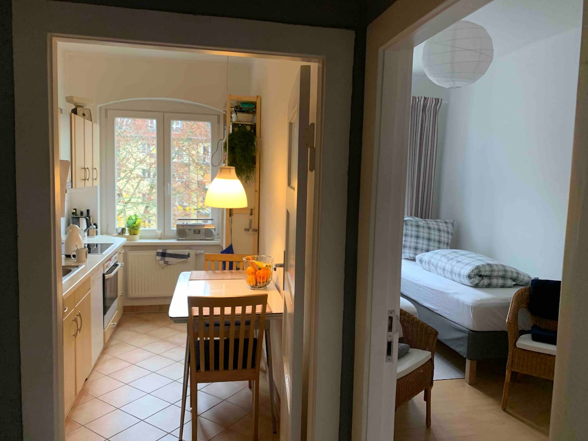 Útulné studio s berlínským šarmem starých budov a moderní koupelnou vč. relaxační sprchou a velkou vanou. Studio se nachází v krásném klidném nádvoří, ale přesto má dobrou polohu. Vhodné pro služební cesty, páry a také rodiny s (malými) dětmi; k dispozici je také rozkládací postel a přistýlka pro kojence/batolata. Moderní kuchyňský kout nabízí dobré vybavení pro přípravu chutných pokrmů. Kromě toho je zde k dispozici myčka nádobí a pračka se sušičkou.