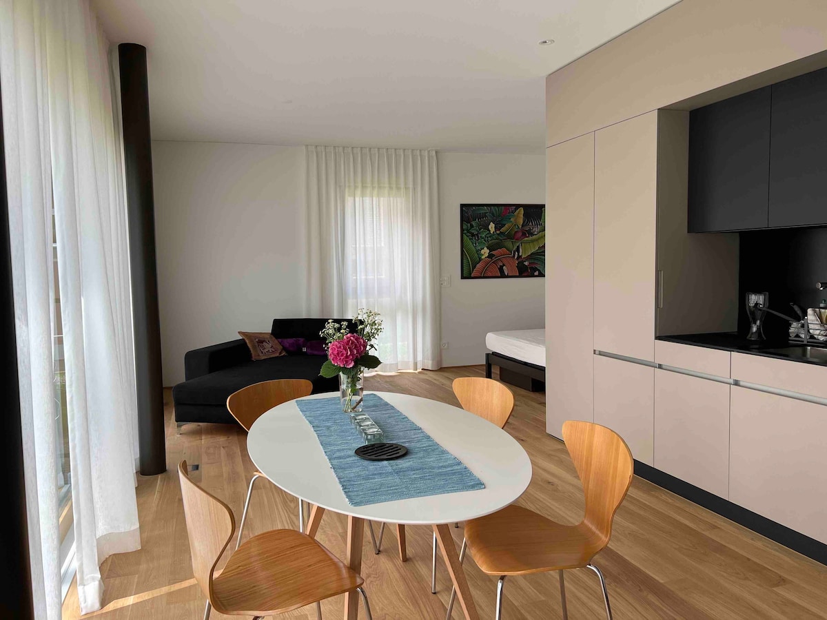Náš moderní apartmán se nachází v přízemí a má prostor pro (4 hosty + 1 dítě). Apartmán o rozloze 50 m² a 2,5 pokojů nabízí elektrické žaluzie, bezplatné Wi-Fi a parkovací místo v podzemní garáži. K dispozici je prostorná terasa, moderní koupelna se sprchou a moderní obývací a jídelní kout se skvělou kuchyní. Samozřejmě je možné pracovat z domova. Blízkost Německa, Bodamského jezera a hor doplňuje pobyt v našem apartmánu. Těšíme se na vás!