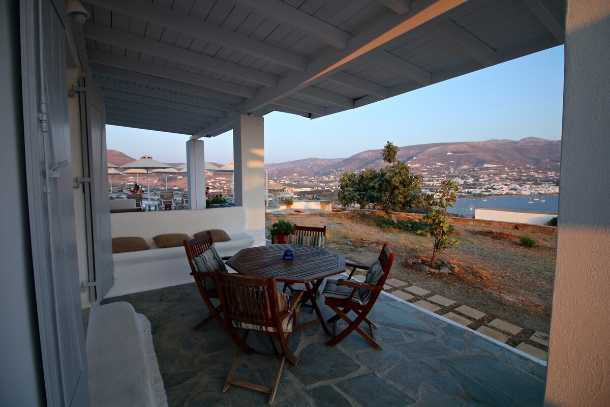 Přízemí bytu v tradičním kykladském stylu, v samém srdci osady Parikia. V ideálním případě se nachází, nabízí klid a relaxaci a pohodlnou centrální polohu. V docházkové vzdálenosti: všechny zajímavé pohledy (starý trh, frankish hrad), pekárna, obchody. Moře je jen pár metrů od domu, a za 2 minuty se dostanete na pobřežní ulici, kde si můžete vychutnat západ slunce. Přístav, autobusové nádraží a stání taxíků jsou vzdáleny 3 minuty chůze.