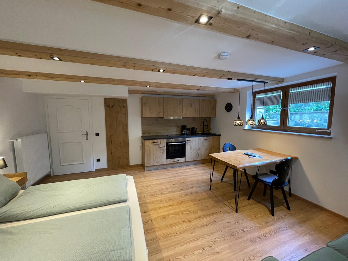 Byt orientovaný na jih nabízí skvělý výhled na alpský svět Karwendelu a Wetterstein. Byl nedávno zrekonstruován a zařízen. Je zde možnost ubytování až pro čtyři osoby - je však ideální pro dvě až tři osoby. Byt má téměř 40 m2 velmi čisté obytné plochy: jídelna-obývací pokoj (s prostorným, plně vybaveným kuchyňským koutem), ložnice (s širokou manželskou postelí a novými matracemi), vlastní koupelna s denním světlem, balkon na jih, vlastní parkovací místo.