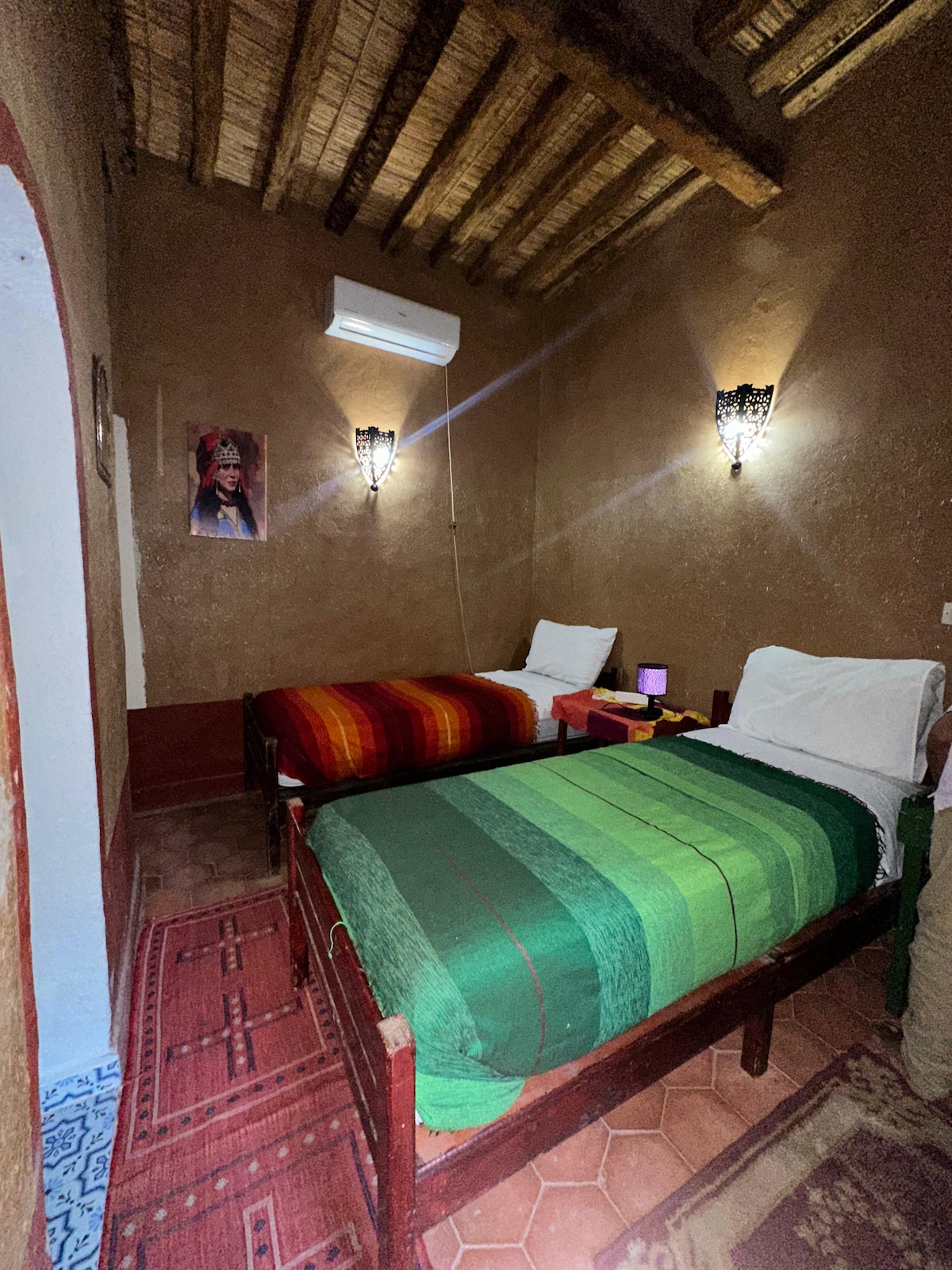 Nebudeš chtít opustit toto krásné a jedinečné místo. Na okraji dun, na jedinečném a autentickém místě, najdeš klid a pohodu. Ocit berberské prostředí objevíš tím, že se podělíš o toto kouzelné místo se svým majitelem. Budeš mít možnost přidat snídani a/nebo tradiční tajine (malý příplatek) bude také možné podniknout výšlap. existuje druhá identická nabídka pro druhou ložnici, která umožňuje ubytovat 4 hosty.