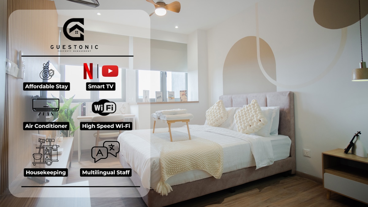 Apartmán ve stylu studia v KL Sentral se 2 manželskými postelemi pro 2 dospělé (až 4 dospělé sdílející 1 koupelnu). Včetně bezplatného parkování, 500 Mbps TIME internet, Netflix, iQIYI, Disney+ Hotstar. Bezplatné použití pračky/sušičky a doplňování vody Diamond v servisním centru (v jiném patře). 5 minut jízdy do KLCC, 10 minut chůze do KL Sentral. Malá Indie, nedaleko Chinatown. Ideální pro páry, přátele nebo malé rodiny. Centrální poloha s jídlem, nákupy, dopravou v blízkosti, snadným přístupem do města, živou místní atmosférou.
