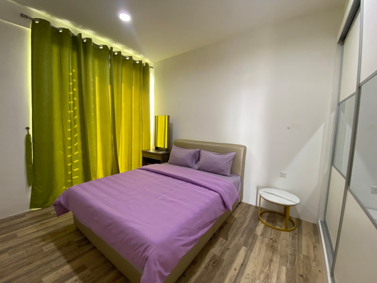 Welcome to our modern and luxe style homestay, designed by a local interior designer! Our unit is at Vivacity Megamall Jazz Suite 4, right above the biggest shopping mall in Kuching. We are on the 13th floor with great city views. Vivacity Megamall has 4 floors of shops, restaurants, and entertainment. Our unit has 2 bedrooms and 1 bathroom, perfect for up to 5 people comfortably. It’s perfect for a couple, small family or business trips. Basic amenities and towels will be prepared.
