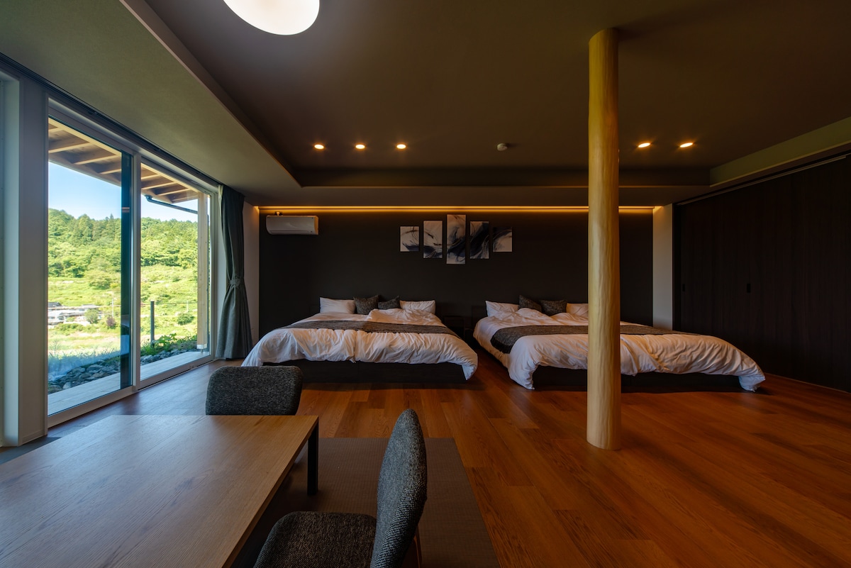 Pokud chceš přidat jídlo, musíš o to požádat v samostatné zprávě nejméně 3 dny před příjezdem. Se saunou a vodní lázní (ne soukromou) V sauně obklopené vůní místních japonských bylin, jako je cypřiš, yuzu a yamogi, můžeš cítit „dokonalé“ při pohledu na malebnou rýžovou terasu a zároveň sledovat malebnou rýžovou terasu. Japonská sauna pod dohledem Japonské asociace pro koupání je obklopena místními vůněmi, jako je cypřiš, yuzu a jogín, a může očistit mysl, tělo i mozek.Udělej si vodní koupel s výhledem na rýžovou terasu nebo venkovní vzduchovou vanu ve sprše s mlhou, abys naostřil/a svou citlivost a ucítil/a „dokonalost“. Pohled na rýžovou terasu ze sauny Rýžová terasa s panoramatickým výhledem na saunu mění svůj výraz každé čtyři sezóny, což z ní dělá krásnou krajinu v souladu s horami.Za deštivých dnů může být mlha také pokryta, takže můžeš zažít fantastickou scénu. Výhled na rýžovou terasu z tvého pokoje This is a space where you can reset your daily life with a healing time.Z každé místnosti je vidět scenérie rýžové terasy.Odpočiň si s načechraným japonským futonem.
