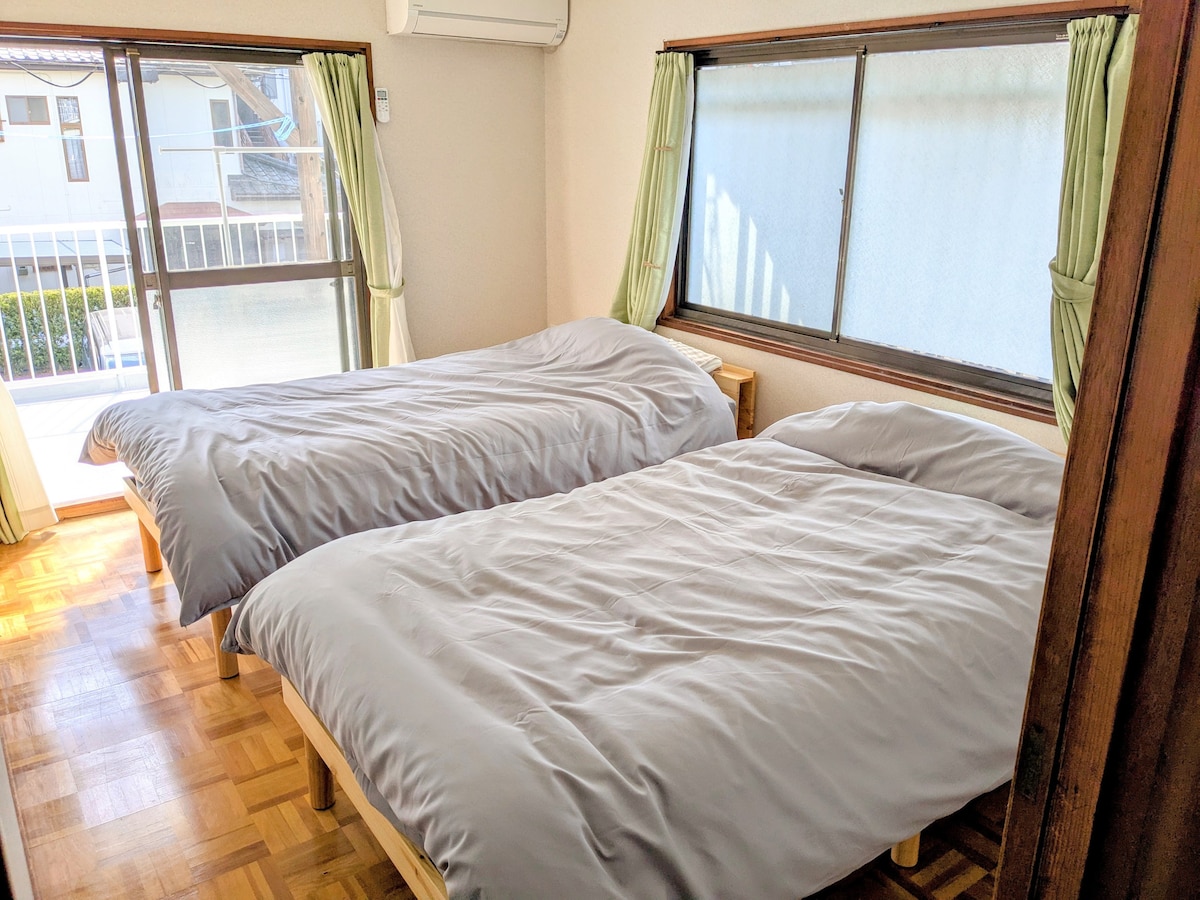 Celá budova je tvoje! Odpočiň si s přáteli a rodinou na klidném místě a v klidném hostinci. Můžeš si také vychutnat grilování. Pokoj má oddělený obývací pokoj, pokoj v japonském stylu a pokoj v západním stylu, takže si můžeš být jist/a, že máš jiný čas na spaní. Prosíme, kontaktuj nás také pro velkou skupinu 5 nebo větší skupinu. There is a lot of beautiful nature within 10 minutes, parks and walking trails. Mezinárodní soutěže a surfařská místa jsou také roztroušena v okolí, což z něj dělá ráj pro surfaře. K dispozici je dřevěná terasa a zahrada, takže můžeš poslouchat cvrlikání ptáků a vychutnat si čas na kávu při východu slunce. Pití piva při sledování krásných západů slunce je úžasné.V zimě je hvězdná obloha velmi krásná a krásná. Můžeš strávit relaxační čas hraním hudby bez obav o sousedství a vychutnávání si grilování a táboráků.