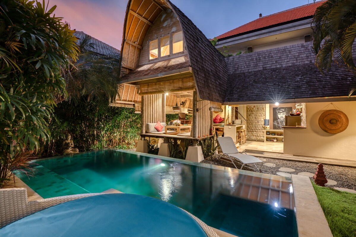 Krásná romantická vila s 1 ložnicí a koupelnou, soukromým bazénem, plovoucí snídaní, klimatizací, domácí zábavou, obývacím pokojem, vybavenou kuchyní, která se nachází v centru Seminyaku, v pěší vzdálenosti od nákupního centra, mezinárodních restaurací, kaváren, turistických atrakcí, SPA, nočního života a jen 7 minut jízdy od pláže. Tuto vilu jsme postavili s tolika láskou, aby vyhovovala novomanželům a páru, který prostě chce strávit kvalitní čas spolu v Seminyaku na Bali