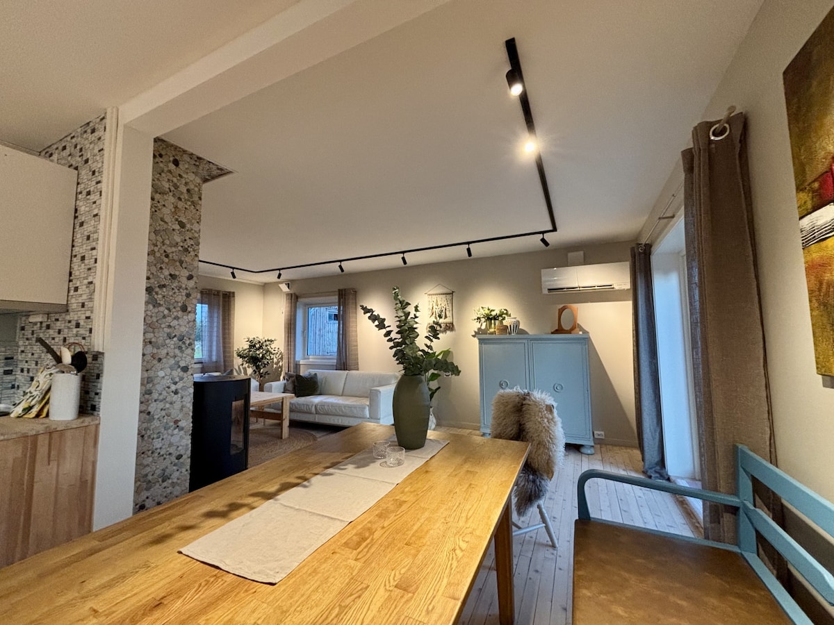 Útulný byt v 1. patře rodinného domu v klidné a tiché oblasti v centru Kvaløysletta. Máš pocit, že žiješ skoro v horách. Z apartmánu je fantastický výhled na Tromsdalstinden, Tromsøya, moře a pohoří v Malangenu. Jen 4,3 km od letiště Tromsø, cca 8–10 minut jízdy. Přibližně 10 minut chůze do obchodu s potravinami a do lékárny. Dobré autobusové spojení a kouzelný turistický terén hned za domem.