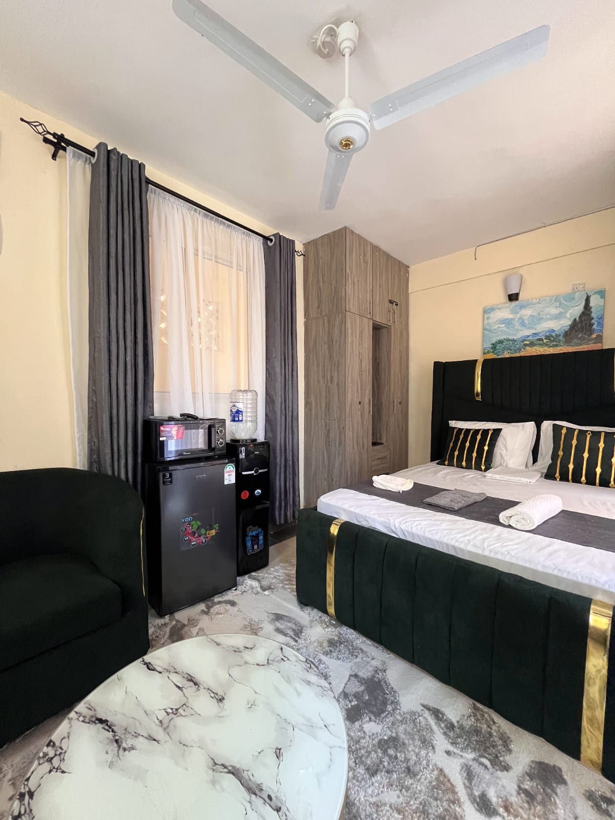 Discover our modern, well-furnished studio in Nyali, perfect for a comfortable stay. The space features stylish, cozy furnishings that create a warm atmosphere. Located within a 5-minute walk to Chandarana Supermarket, you’ll find everything you need nearby. Mamba Village is just a short drive away, offering unique attractions like a crocodile farm. This studio is also close to Nyali Beach, providing easy access to both relaxation and entertainment. Ideal for work or leisure.