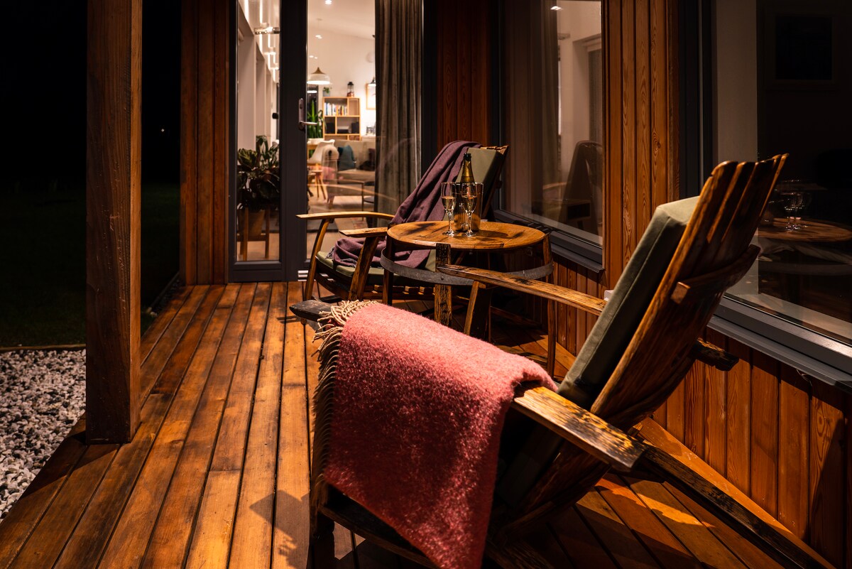 Útulná moderní chalupa, nádherný výhled na moře a hory