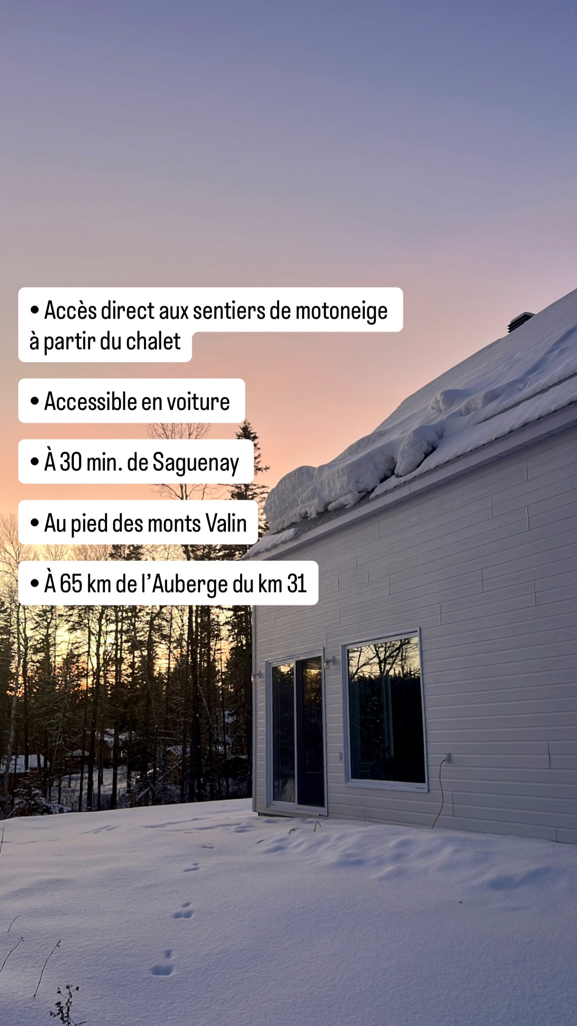 Sur le chemin du valinouet venez profiter de notre chalet 4 saisons au abord du petit lac clair. Vous serez charmé par la tranquillité du secteur avec une magnifique vue sur le lac. Que se soit simplement pour décrocher, relaxer , le canot, le kayak, le vtt et la motoneige , tout le monde y trouvera son compte! Situé à seulement 13 minutes du valinouet et 15 minutes de chicoutimi, l' accès au sentiers de vtt et de motoneige fédéré est facile.