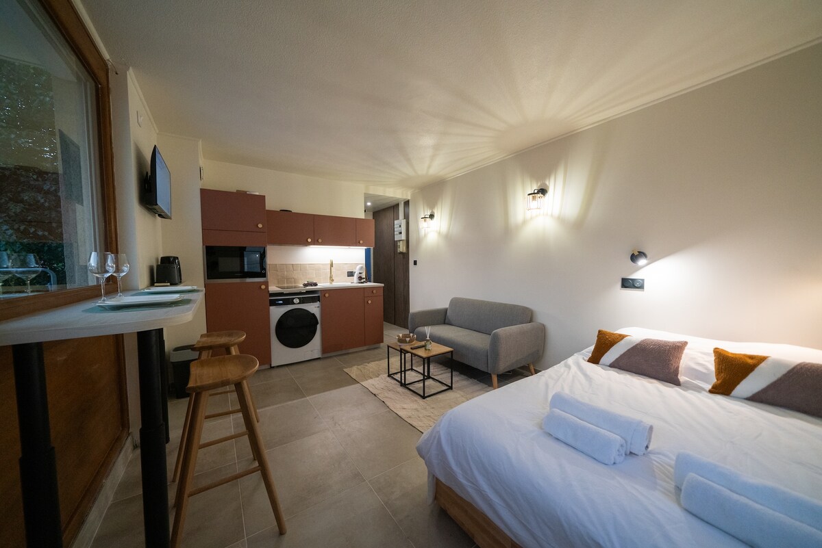 Réservez dès maintenant votre séjour aux " Gîtes la Tarine" ✨ 🏡 Studio duplex 27 m² classé ⭐️ Atout France & Gîtes de France, à 5 min du centre d’Albertville. Clim❄️, WiFi⚡, Netflix🎬, cuisine équipée 🍳, lave-linge 🧺. Lit fait 🛏️, serviettes fournies 🧼. Vue montagne ⛰️ sans vis-à-vis, parking réservé 🚗. Boissons + café ☕, madeleines, biscuits & briochettes offertes 🥐 Entrée autonome 🔑 Idéal ski 🎿, rando 🥾, vélo 🚴 & lac d’Annecy 🌊. Atmosphère calme, logement atypique🌟