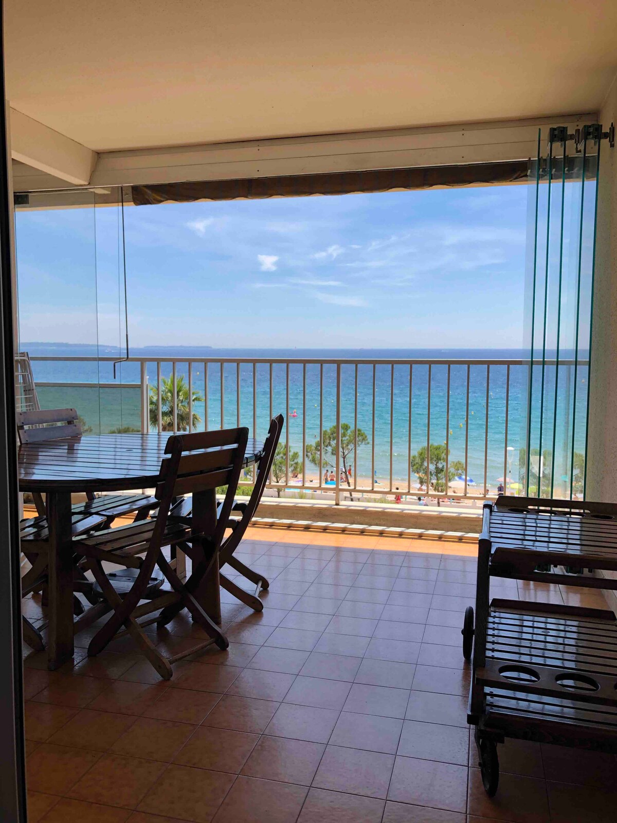 Accès direct aux plages sable fin en face de votre logement qui se trouve au 6 eme et dernier étage de l immeuble .PARKING PRIVÉ numéroté dans résidence sécurisée . Vue imprenable 190 degrés sur la mer , Estetel et îles de Lerins. Apartement très propre , fonctionnel et moderne . Serviettes de bains fournis ainsi que les draps gel douche ,shampoing , sèche cheveux Lave linge et petite kitchenette indépendante équipée . Climatisation dans le salon et ventilateur au plafond dans la chambre .