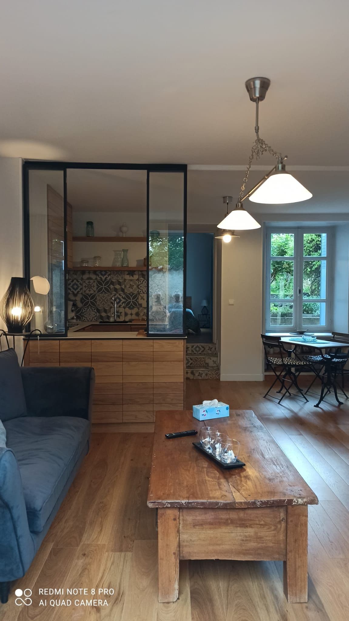 Dům 65 m² v srdci přírodního parku Livradois Forez – Nový – Terasa 15 m² s markýzou + 200 m² uzavřená zahrada – Domácí mazlíčci vítáni (1) Nahoře: 1 ložnice s cloistrou – 15 m² 1 Manželská postel 140 * 190 1 koupelna Obývací pokoj: Vybavená kuchyně (Cookeo, dělené víko, ale funguje perfektně) Rozkládací pohovka pro 2 osoby 140x190 Stroj na raclette Ložní prádlo k dispozici (prostěradla, vana ) Žádná wifi TV-TNT SAT Pozor na podlahu: stoupání/klesání + schod