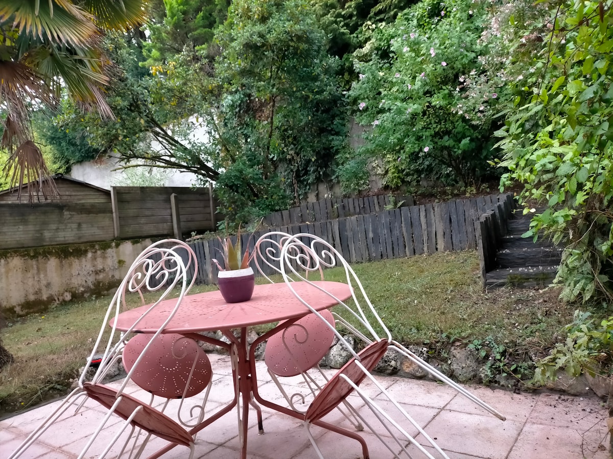 Notre maison est des années 1950 elle a été conçue de À à Z par mon papa. Nous vivons au premier et l appartement est en dessous. Nous avons remis tout au goût du jour. L appartement comprend 1 grande chambre..avec lit 1 salon canapé et 1 un lit simple 1 cuisine toute équipée 1 douche 1 wc Vous avez accès par la chaufferie au jardin.. Vous pouvez y déguster vos repas et vous reposer. Tout est au calme.