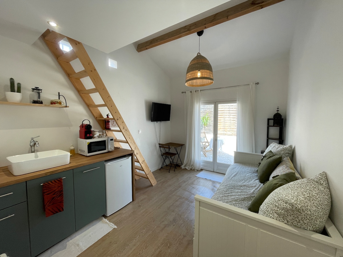 Nacházíme se v klidné oblasti, v srdci docela provensálské vesnice. Garsonka se nachází v přízemí našeho řadového domu. Jakmile jsi na zahradě, je vstup nezávislý na tom našem. Ubytování se skládá ze vstupu se skříní, koupelny (sprcha), toalety, obývacího pokoje (kuchyňský kout, jídelna a 160 rozkládacích pohovek, šatník). Toto ubytování jsme navrhli a vyzdobili tak, aby vítalo naše hosty jednoduchým, ale pohodlným a vřelým způsobem.