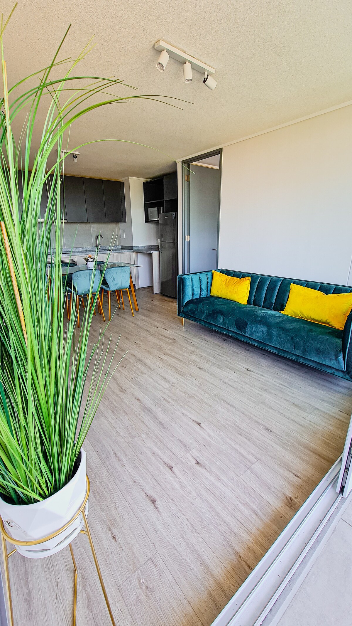 Moderní, dobře udržované studio v Santiagu, v klidné oblasti La Florida, pouhé 2 minuty 🚇 od stanice metra Bellavista La Florida a nákupního centra Vespucio. Vše v pěší vzdálenosti: supermarkety, kliniky, lékárny, restaurace a základní služby. Ideální pro páry, turisty nebo služební cesty. K dispozici je klimatizace ❄️, vysokorychlostní WiFi 📶, vybavená kuchyň, 55" smart TV, moderní koupelna s bidetem + sušákem 🚿, pracovní/jídelní stůl 💻, terasa s výhledem na město + hory 🌃 a snadný samoobslužný check-in.