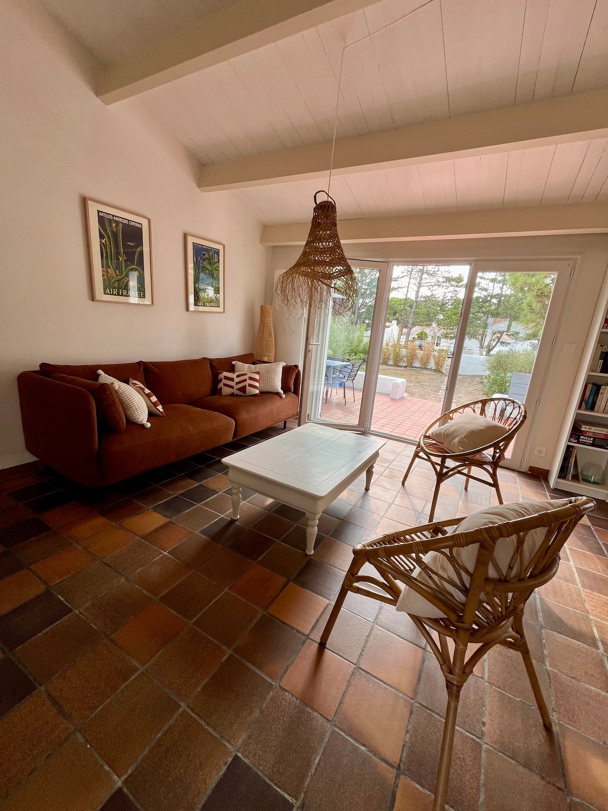 Que vous veniez en train, en bus, en voiture... un havre de paix vous attend ! Maison dans le bourg de Ste Marie avec jardin, à 100 m. des commerces, 300 m. des plages, Très lumineuse, chauffage au sol et poêle à bois en agrément. Literie de qualité en mezzanine. 2 vélos à votre disposition. Local sécurisé pour vos propres vélos. Jardin de charme, sans vis à vis, hamac, chaises longues, terrasse et balcon pour déjeuner. Forfait ménage non compris, possibilité de réserver sur place.
