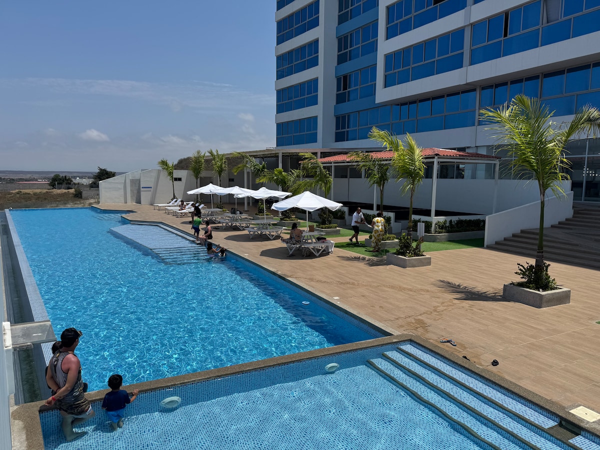 Nachází se 145 km od Guayaquilu, v Punta Centinela, Santa Elena, Ekvádor. Apartmán se 2 ložnicemi, 2 koupelnami, 1 manželskou postelí, trojitou postelí, 2 dvoulůžkovými postelemi a 1 jednolůžkovou postelí (s prémiovými matracemi), rozkládací pohovkou v obývacím pokoji. 1 parkovací místo. 65" TV, Directv, Netflix, pračka a sušička, klimatizace, WIFI. Budova s výtahy, společenský prostor s grilem, bazény, vířivka. Nájem zahrnuje přístup do plážového klubu od středy do neděle do 17:00. Exkluzivní a bezpečná pláž.