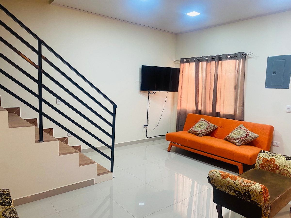 Condominios completamente nuevos, acogedores y modernos. Completamente equipados para tu estadia de negocios, o familiar, cuenta con una cocina equipada, agua caliente, aire acondicionado, ventilador de techo, amenidades de bano. Cuenta con dos recamara que alojan 3 personas y un sofa cama en la sala. Cuarto de Lavanderia y estacionamiento seguro y gratis. Ademas cuenta con un sistema de camara de vigilancia 24/7, cerca electrica y porton automatico.