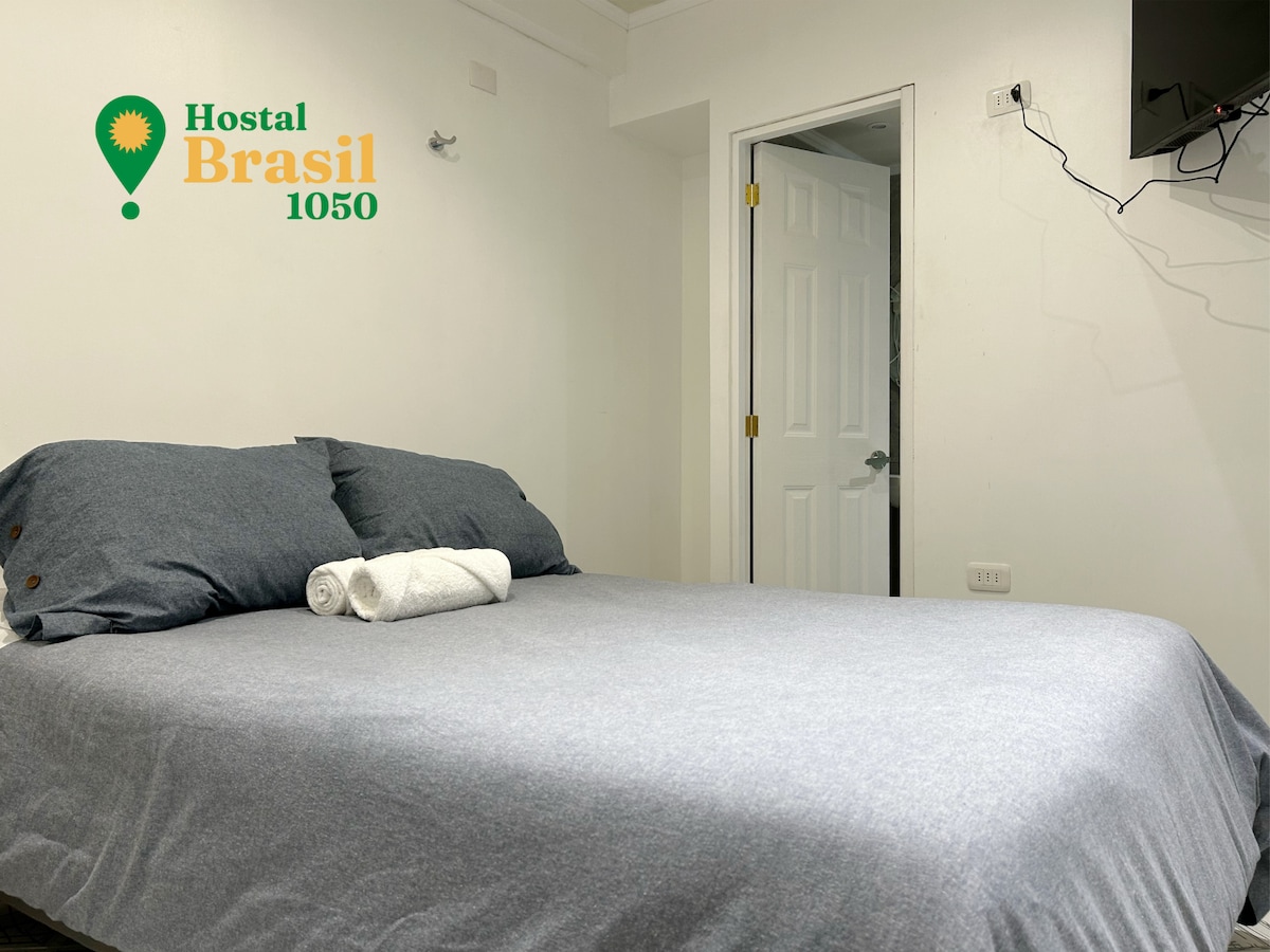 Vítej v Hostal Brasil 1050. A hostel located a few steps from the center of La Serena, the listing corresponds to the DOUBLE room N°1 located on the first floor. Odpovídá jednomu z největších pokojů v Hostalu, má manželskou postel, chytrou televizi, vlastní koupelnu se sprchovým koutem, vysoušečem vlasů, mýdlem a ručníky. Kromě toho, zařízení má společnou kuchyň, terasu, snídani a WI-FI. Vzhledem k charakteristikám tohoto sektoru nemáme parkování.