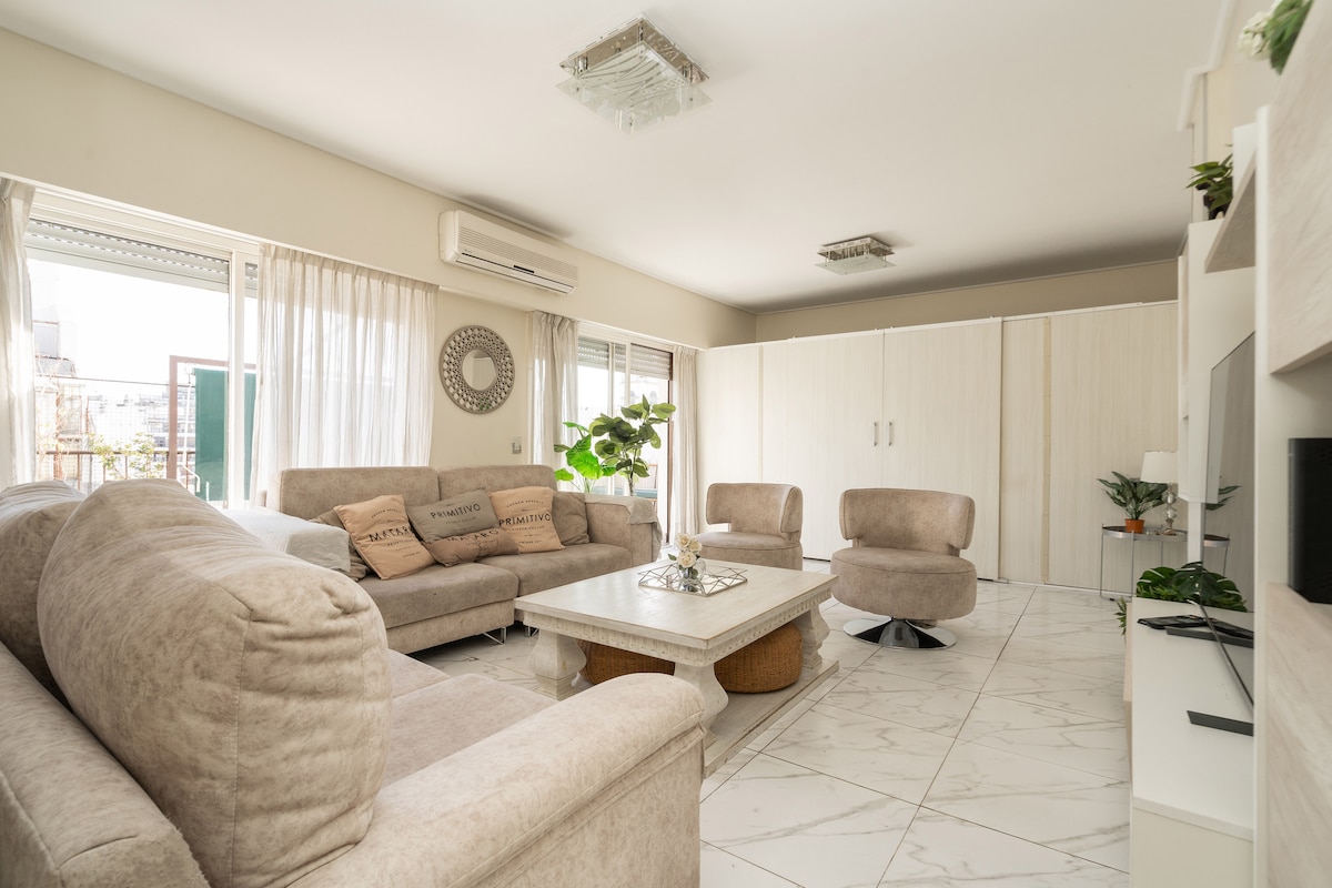 Světlý dvoupodlažní penthouse v srdci čtvrti Palermo Soho s prostornou soukromou terasou ideální k relaxaci nebo stolování venku. Tento jedinečný domov plný přirozeného světla a navržený pro pohodlí nabízí soukromí a styl v jedné z nejživějších oblastí Buenos Aires. Nachází se na ulici Soler, jen pár kroků od Don Julia a je obklopen špičkovými restauracemi, butiky a nočním životem. Perfektní pobyt v Soho.