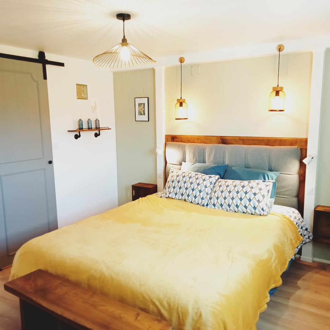 Renovovaný mezonet ve starém panském sídle, samostatný vchod, zahrada 100m². 1 hodinu od oceánu, Španělska a Montains Přízemí : Vestavěná kuchyň, obývací pokoj s rozkládací pohovkou a TV. Ložnice 2 lůžka 90*200 (která může být spojena s vrchní matrací pro manželskou postel). Nahoře : Koupelna / WC, 1 ložnice s 1 manželskou postelí a 1 90*200 +TV/chromecast a úložnými prostory. Soukromá zahrada : Stůl, židle, gril + plancha.