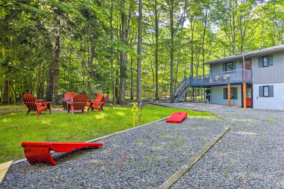 Game Room & Fire Pit: Tree-Lined Pocono Lake Cabin
